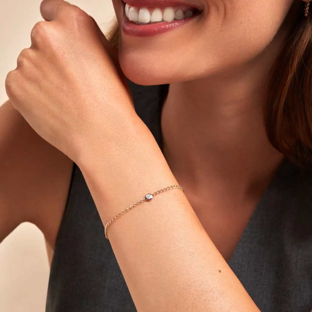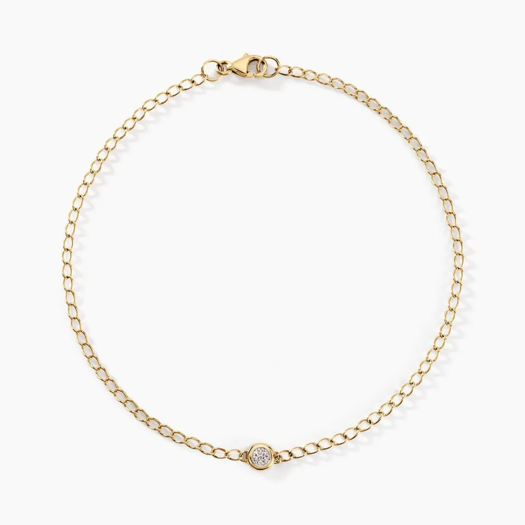 Bracelet Or Jaune 375/1000 Rond Diamants 0.004cts Illusion Maille Gourmette 21cm