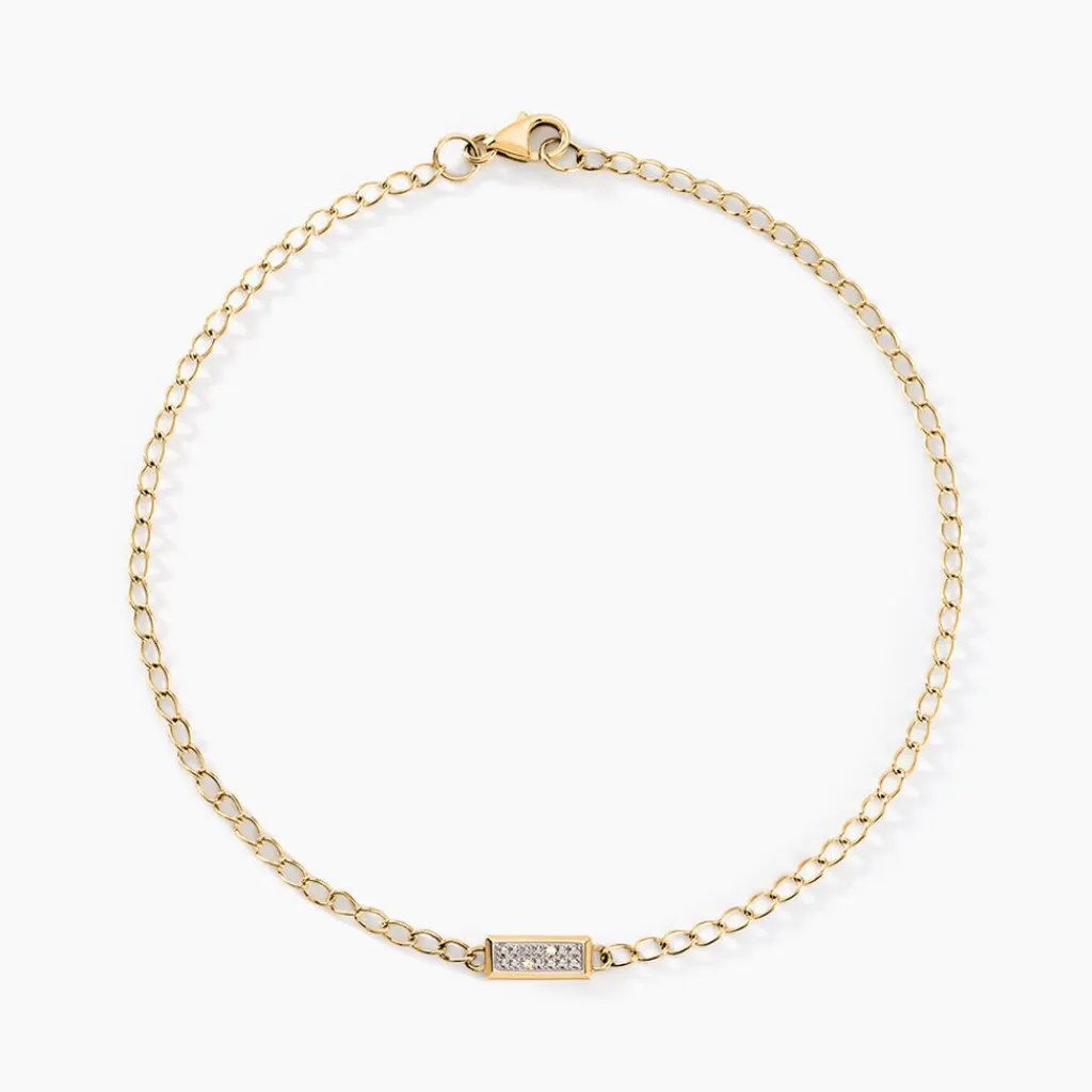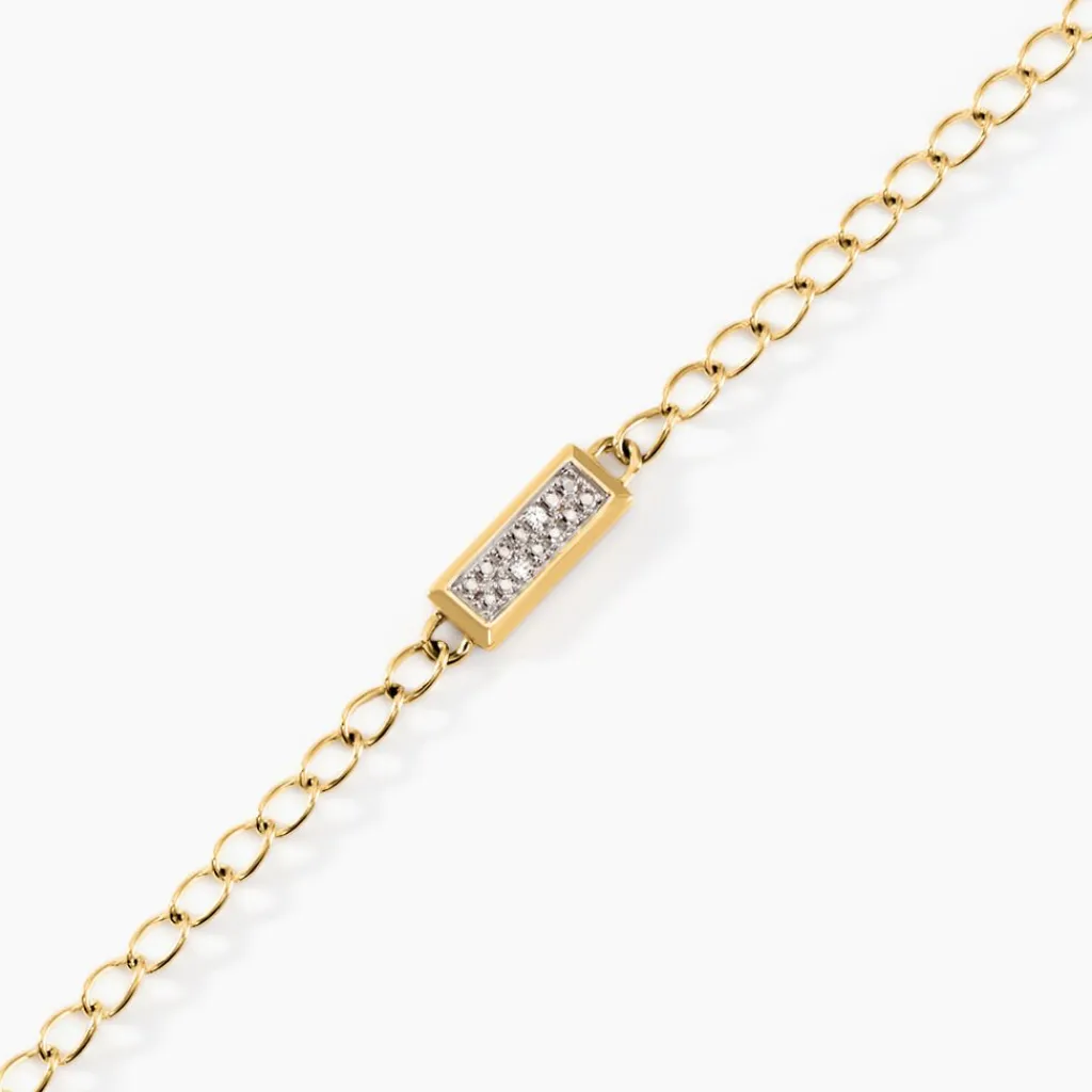Bracelet Or Jaune 375/1000 Rectangle Diamants 0.004cts Illusion Maille Gourmette 21cm