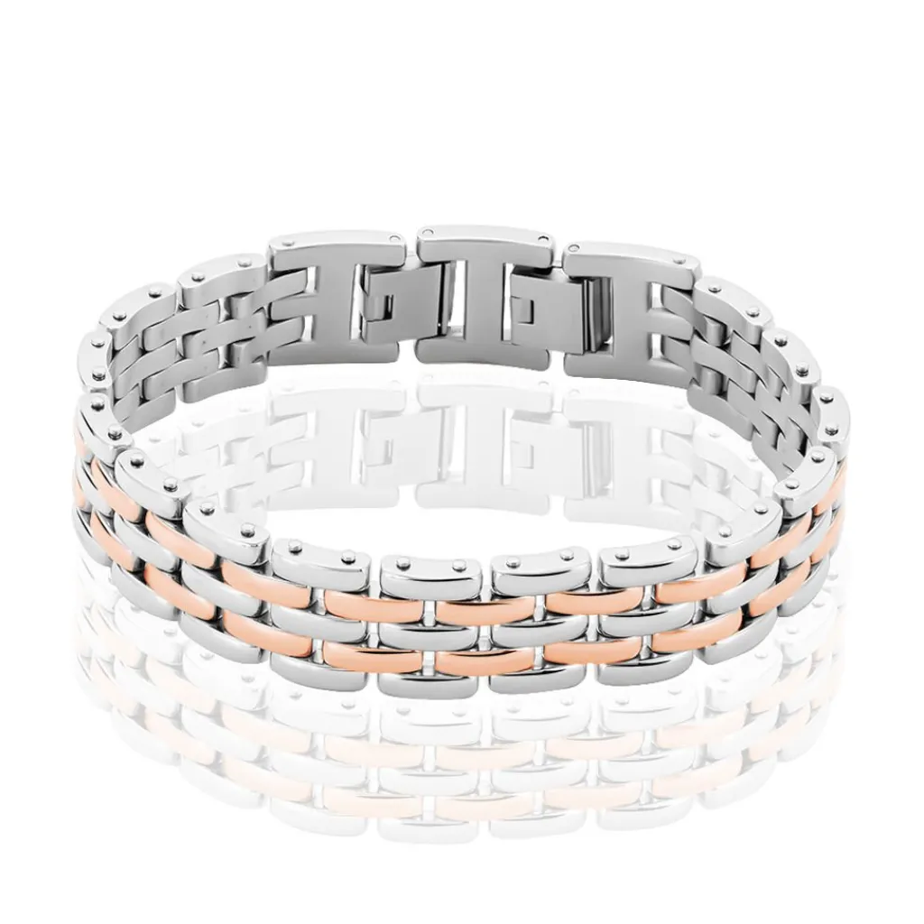 Bracelet Acier Bicolore 3 Rangs Maille Grain De Riz
