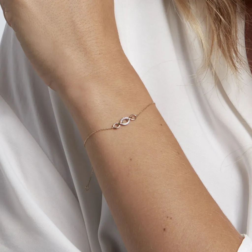 Bracelet Or Jaune 375/1000 Forme Triple Cercle Pavage Diamants Maille Forçat 18cm