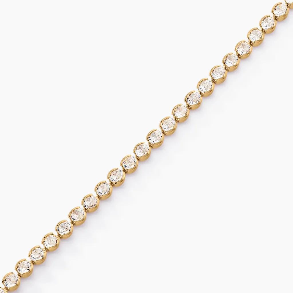 Bracelet Plaque Or Jaune Tennis Riviere Oxydes De Zirconium Sertis Clos Rond