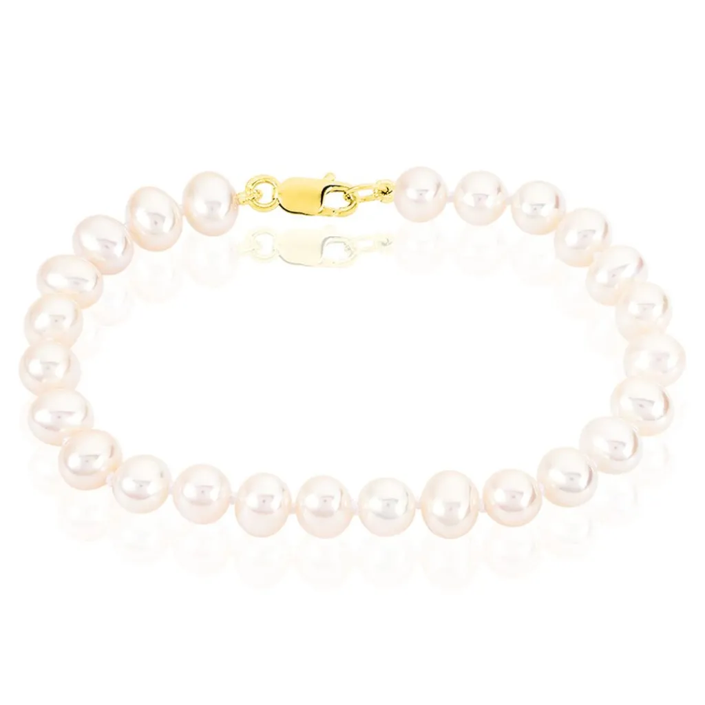 Bracelet Or Jaune 375/1000 Perles De Culture Baroques Nacre 6/6.5mm 18cm