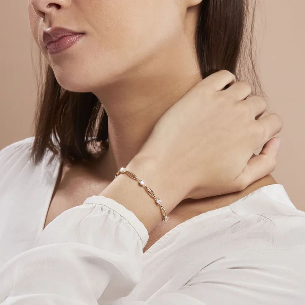 Bracelet Plaque Or Jaune Maille Fantaisie Oxyde De Zirconium 18cm