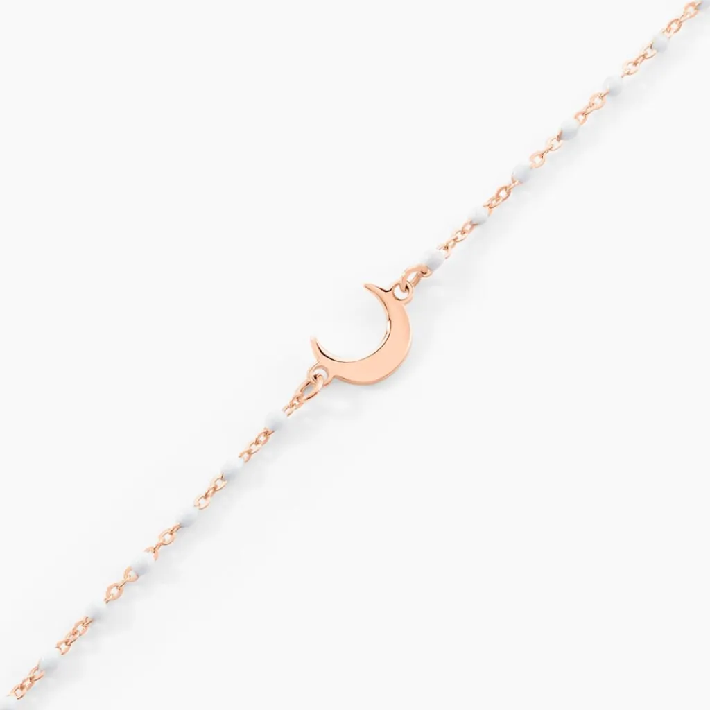 Bracelet Court Argent Rose 925/1000 Lune Boules émail Blanc Maille Boules 13+3cm
