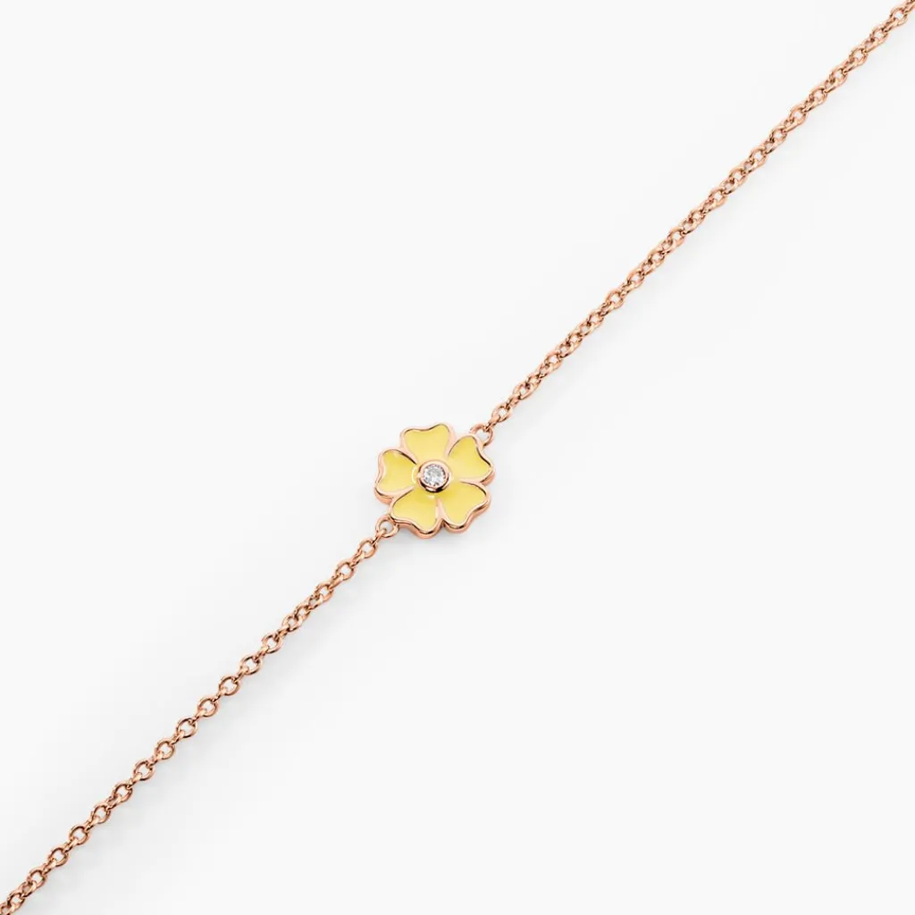 Bracelet Court Argent Rose 925/1000 Fleur Email Jaune Oxyde De Zirconium Maille Jaseron 13+3cm