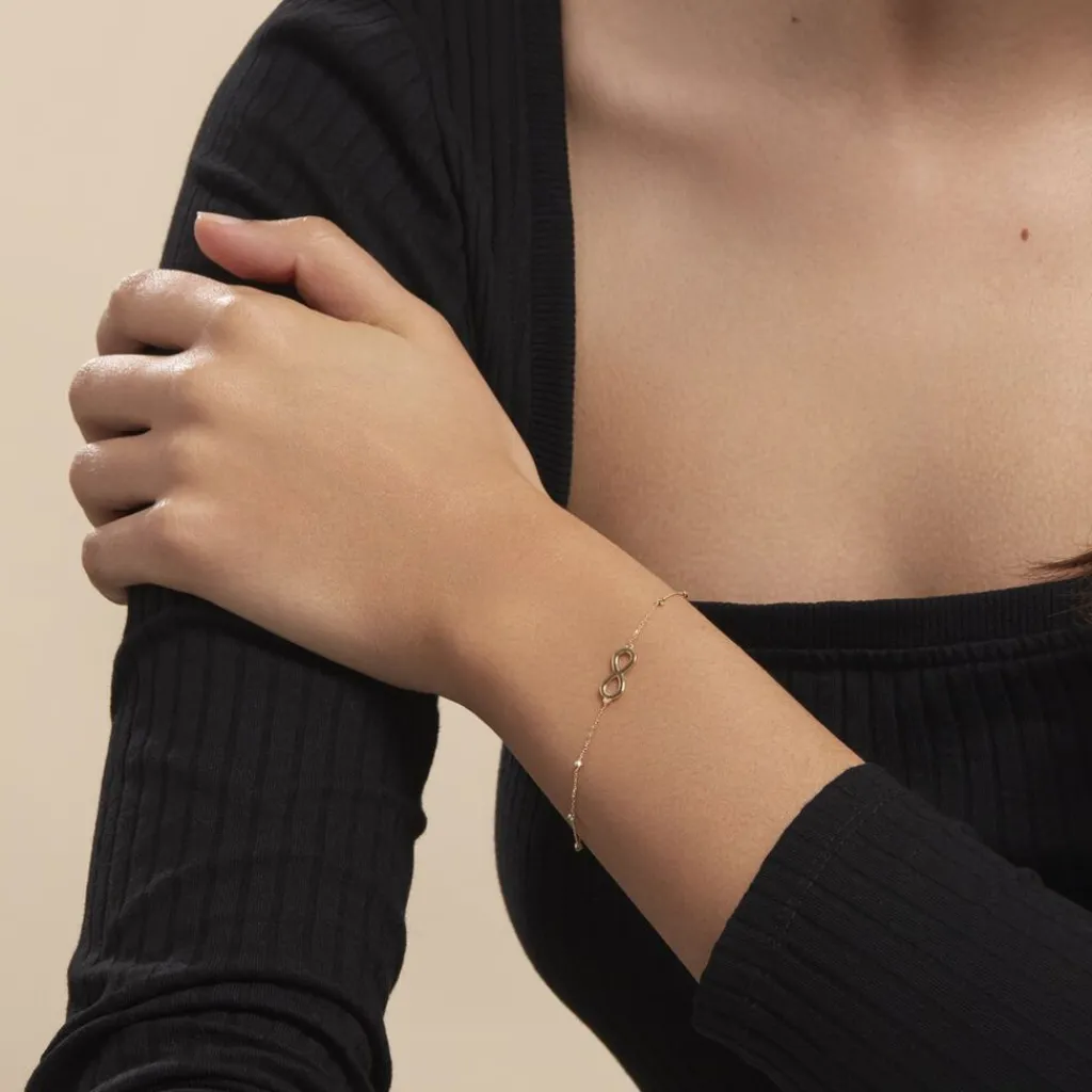 Bracelet Or Jaune 375/1000 Chaine Boules Et Infini Maille Jaseron 16+2cm