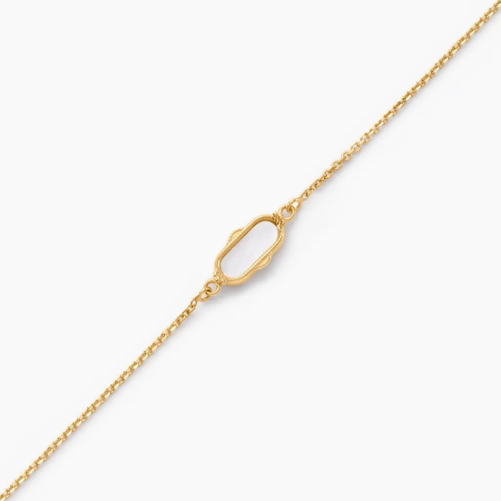 Bracelet Or Jaune 375/1000 Ovale Nacre Blanche Effet Perle Maille Jaseron 16+2cm