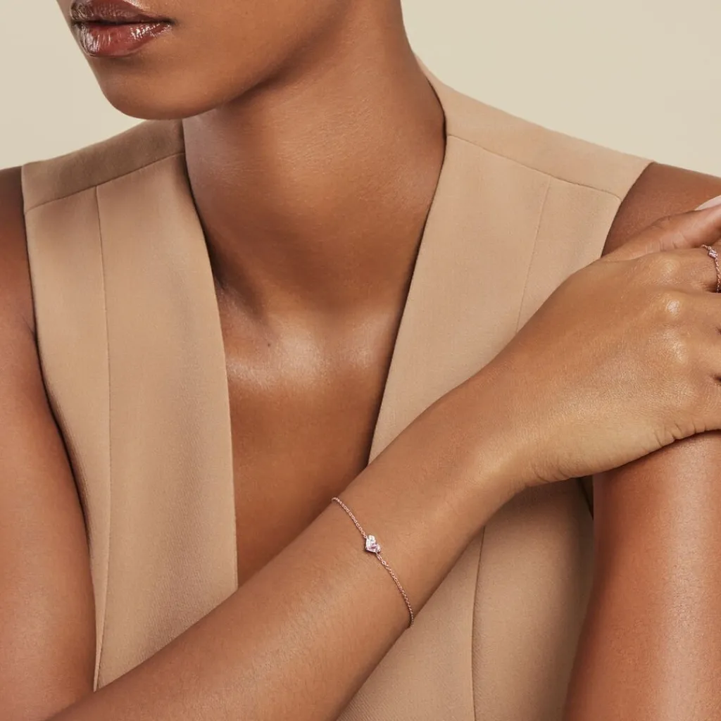 Bracelet Argent Rose 925/1000 C艙ur Oxydes De Zirconium Rose Et Blanc Maille Jaseron 16+3cm