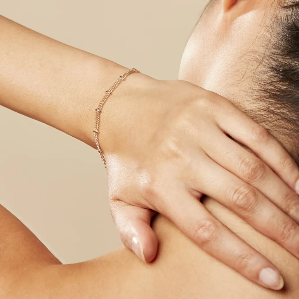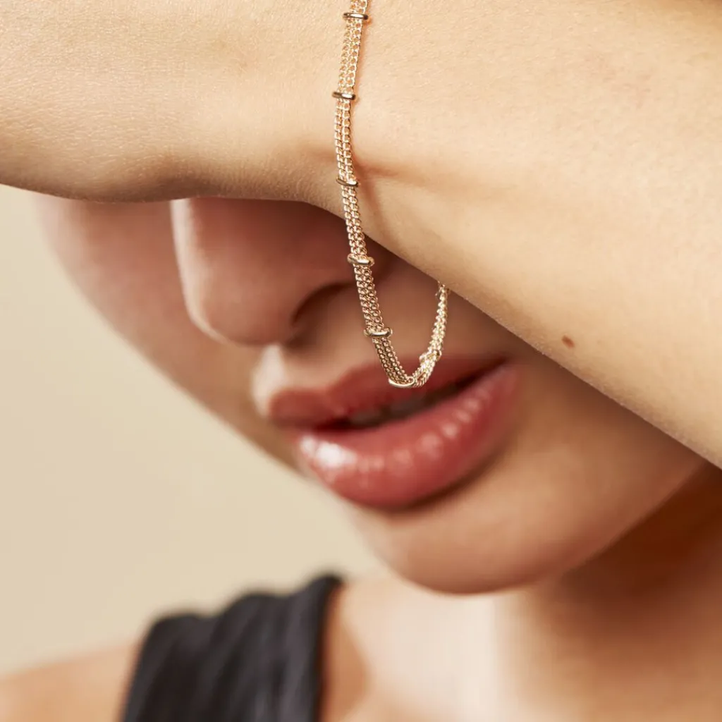 Bracelet Plaqué Or Jaune Double Chaines Et Barrettes 18cm