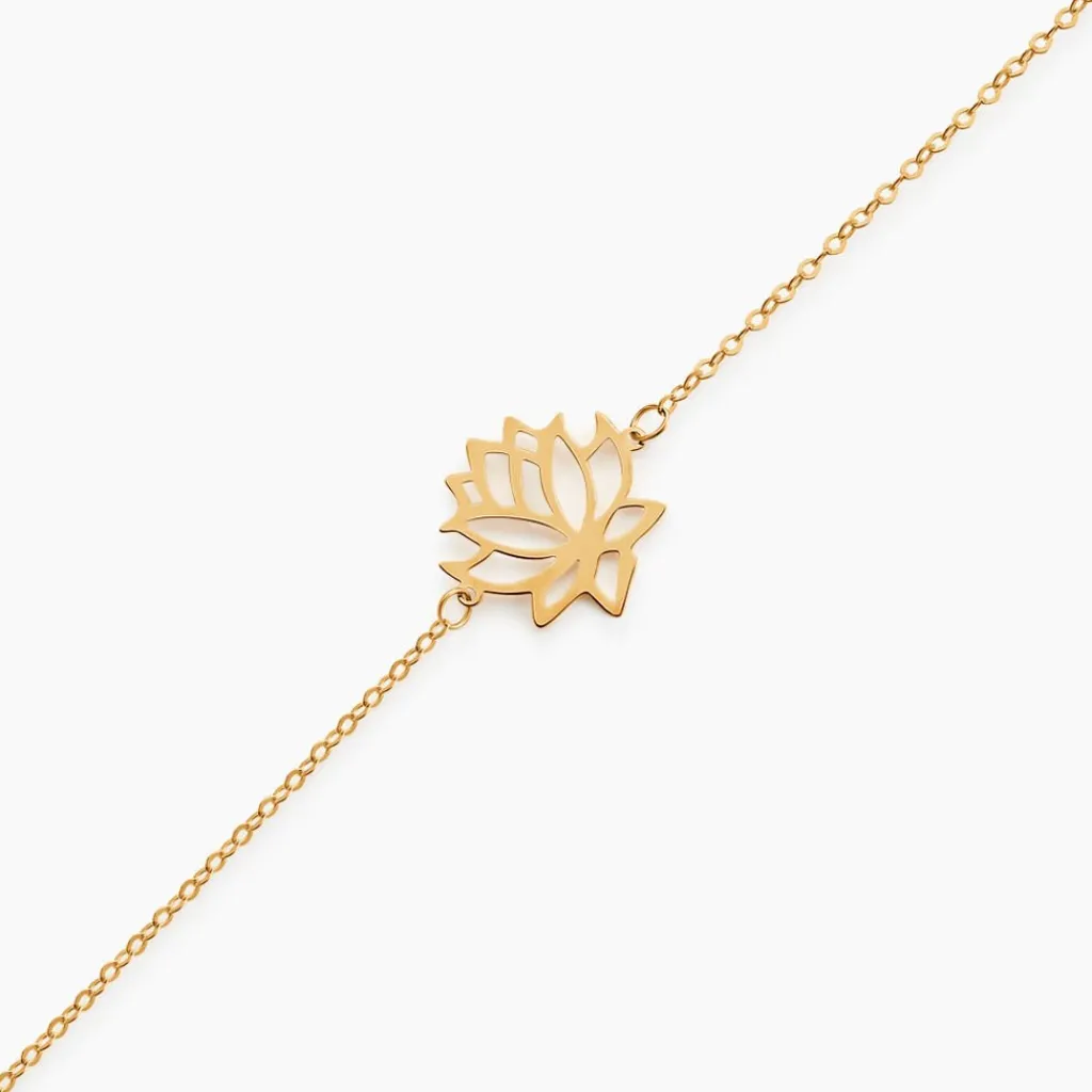 Bracelet Or Jaune 375/1000 Fleur De Lotus Ajourees Maille Forcat 18cm