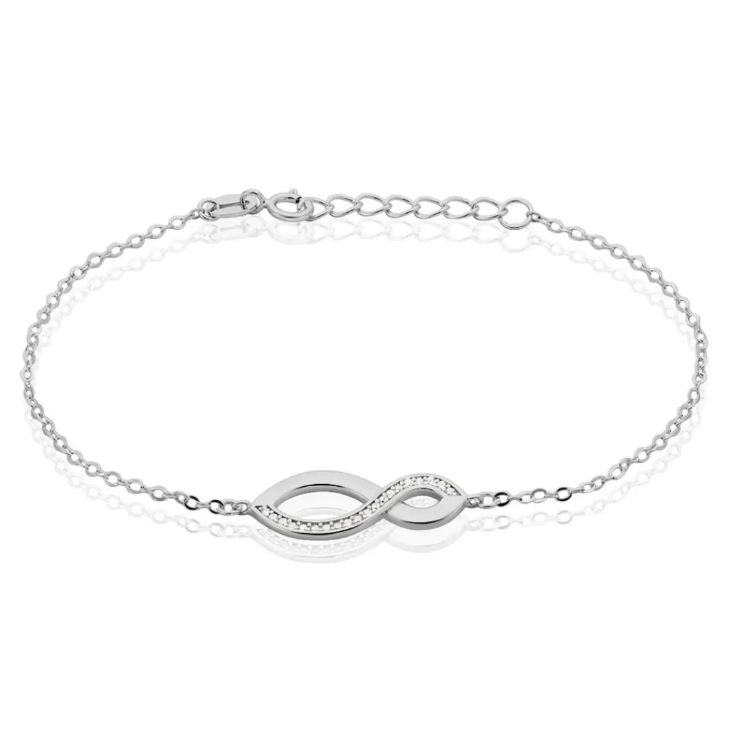 Bracelet Argent 925/1000 odile Motif Infini Oxydes De Zirconium Chaine Maille Forcat 18cm