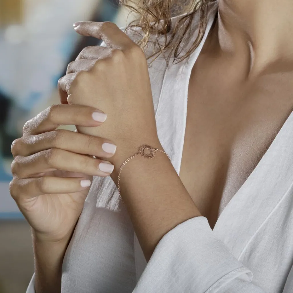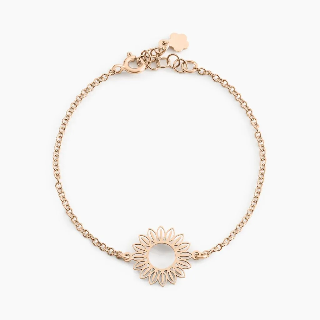 Bracelet Argent Rose 925/1000 Soleil Ajoure Maille Forcat 18cm
