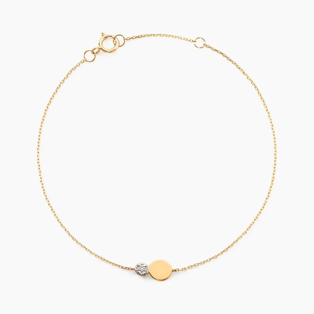 Bracelet Or Jaune 375/1000 Pastille Pleine Et Pastille Pavage Diamants Maille Forcat 16+2cm