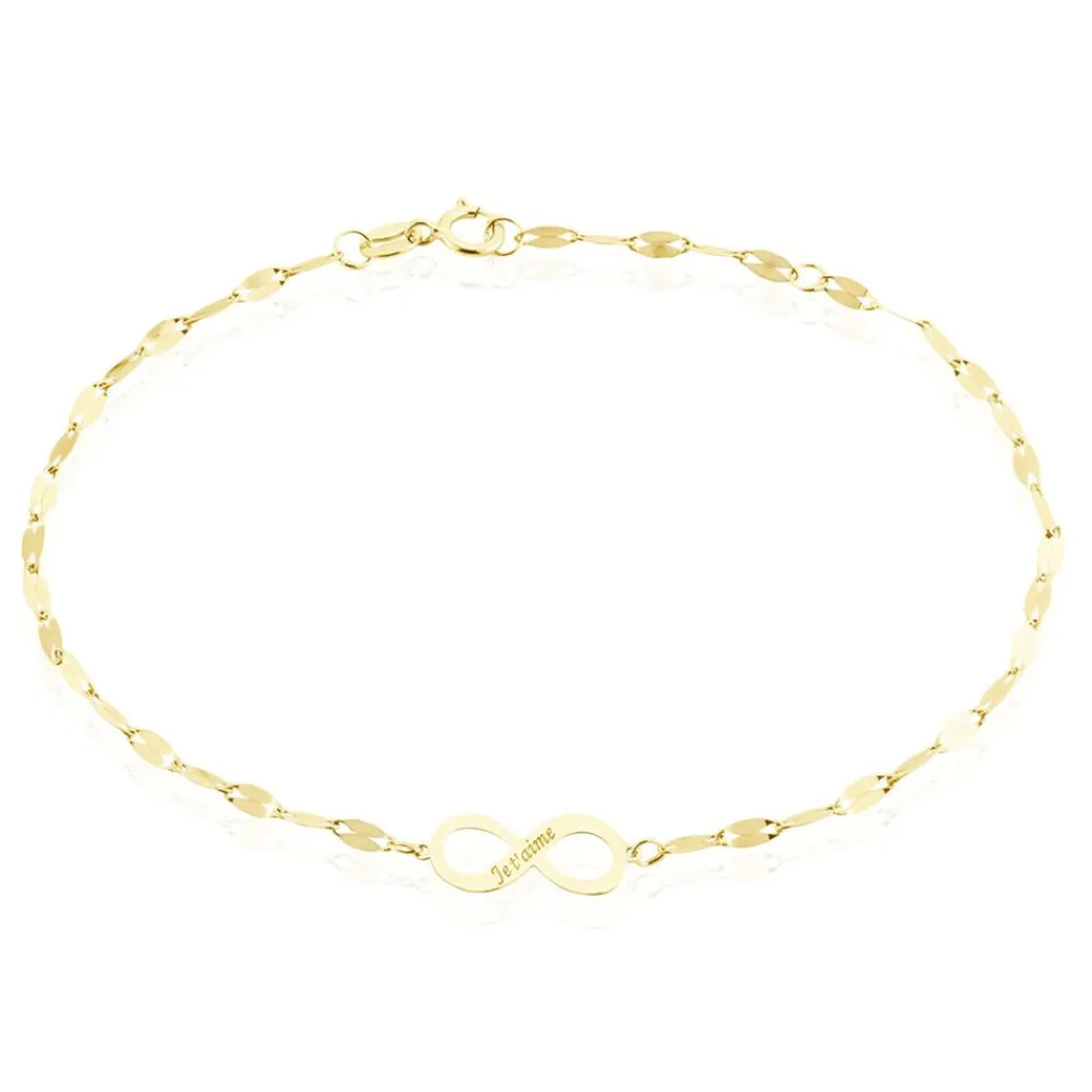 Bracelet Or Jaune 375/1000 Motif Infini Message Je Taime Maille Lumina 16/18cm