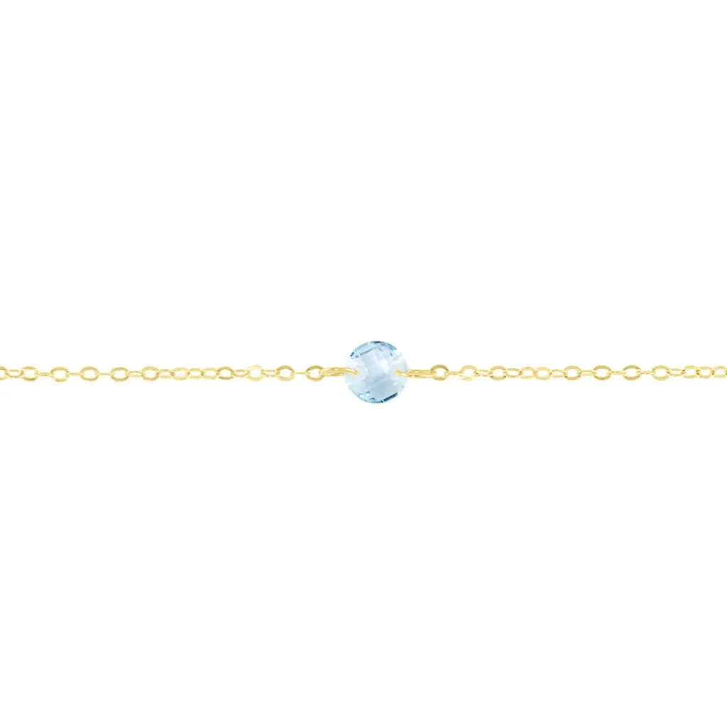 Bracelet Or Jaune 375/1000 Pampille Oxyde De Zirconium Bleu Maille Forcat 16/18cm