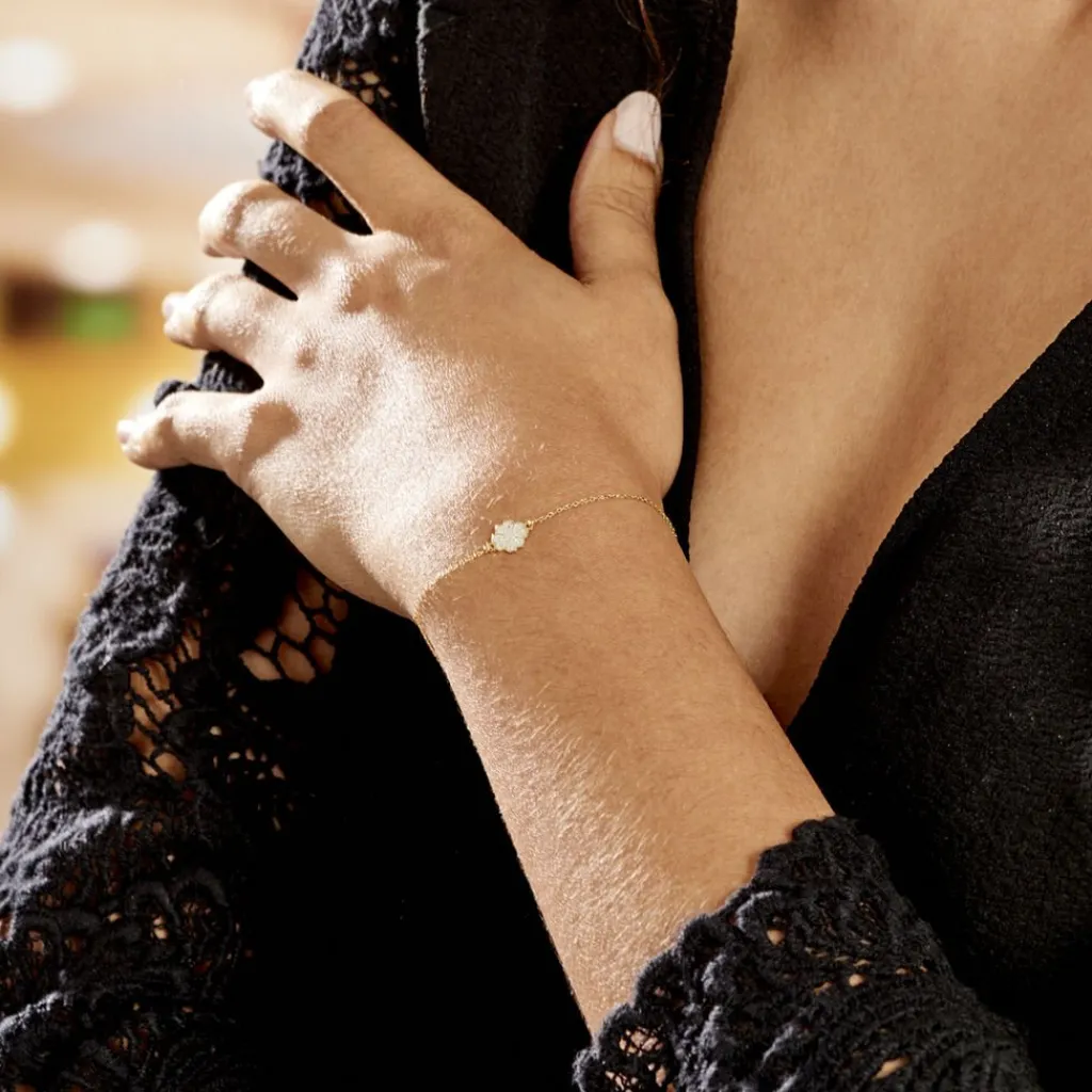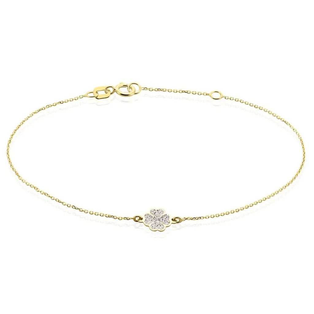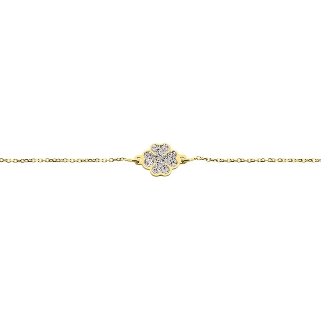 Bracelet Or Jaune 375/1000 Trefle Glitter Argente Maille Jaseron 16+2cm