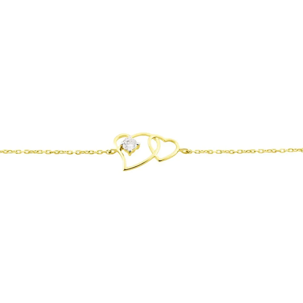 Bracelet Or Jaune 375/1000 Forme Double C艙ur Et Oxyde Central 18.5 Cm