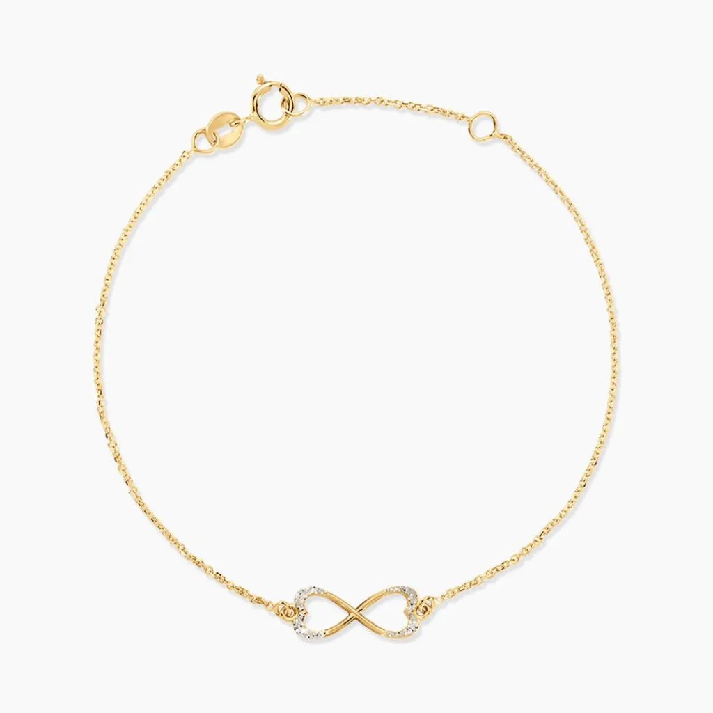 Bracelet Or Jaune 375/1000 Infini Glitter Argente Maille Jaseron 16+2cm