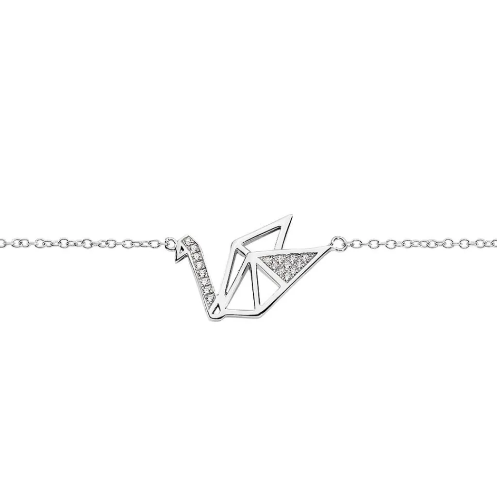 Bracelet Argent Blanc 925/1000 Cygne Oxydes De Zirconium 18.5cm