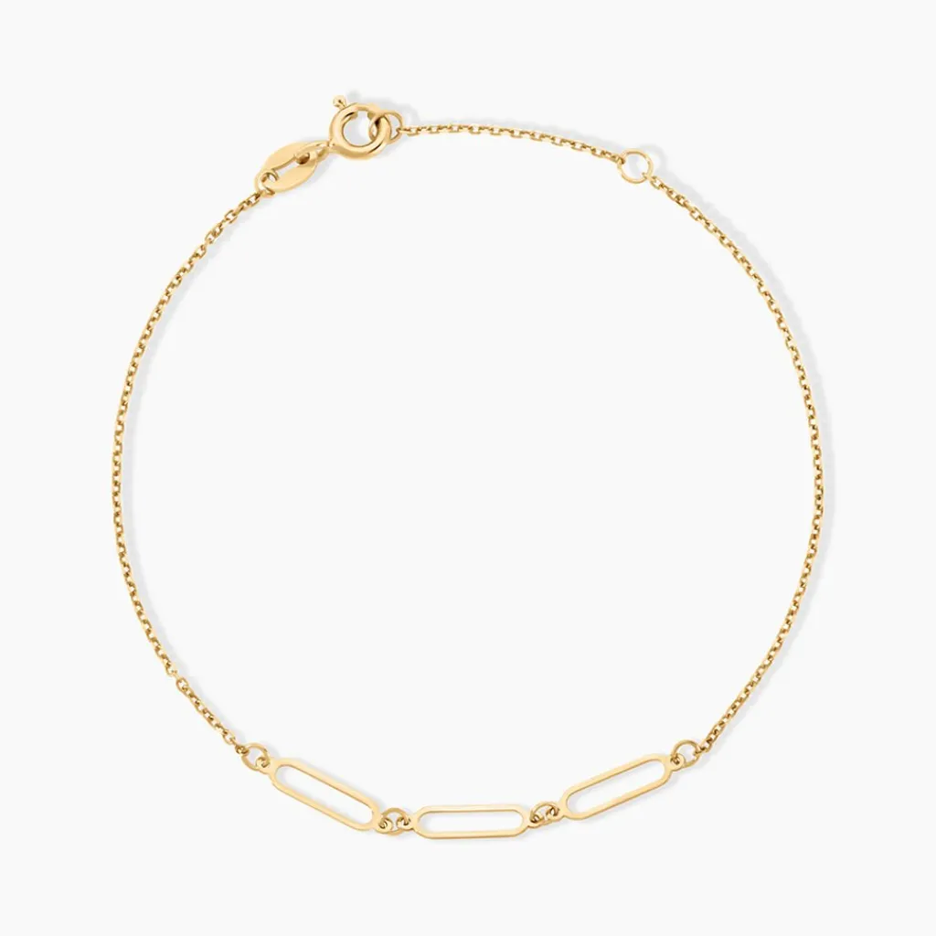 Bracelet Or Jaune 375/1000 Trilogie Maillons Ovales Maille Forcat 16+2Cm