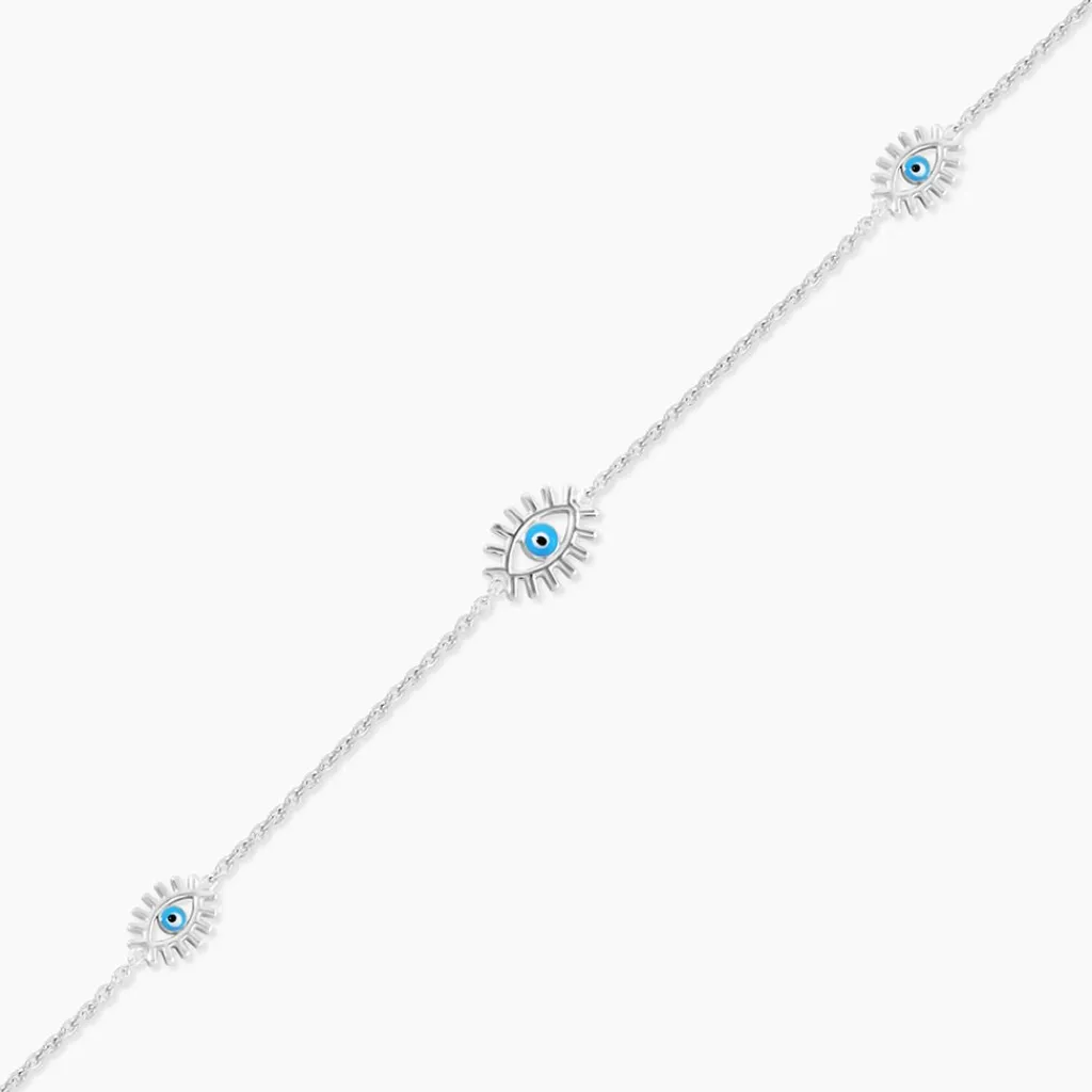 Bracelet Argent Blanc 925/1000 艙il Email Bleu Maille Forcat 16+3cm