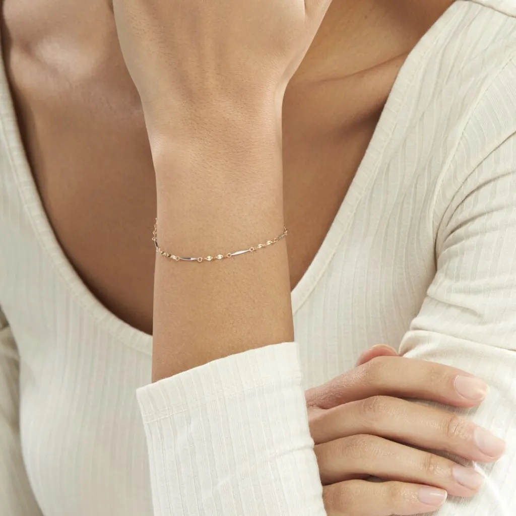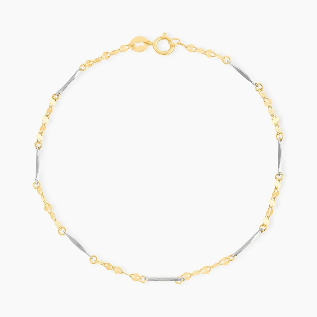 Bracelet Or Bicolore 375/1000 Maille Fantaisie 18cm
