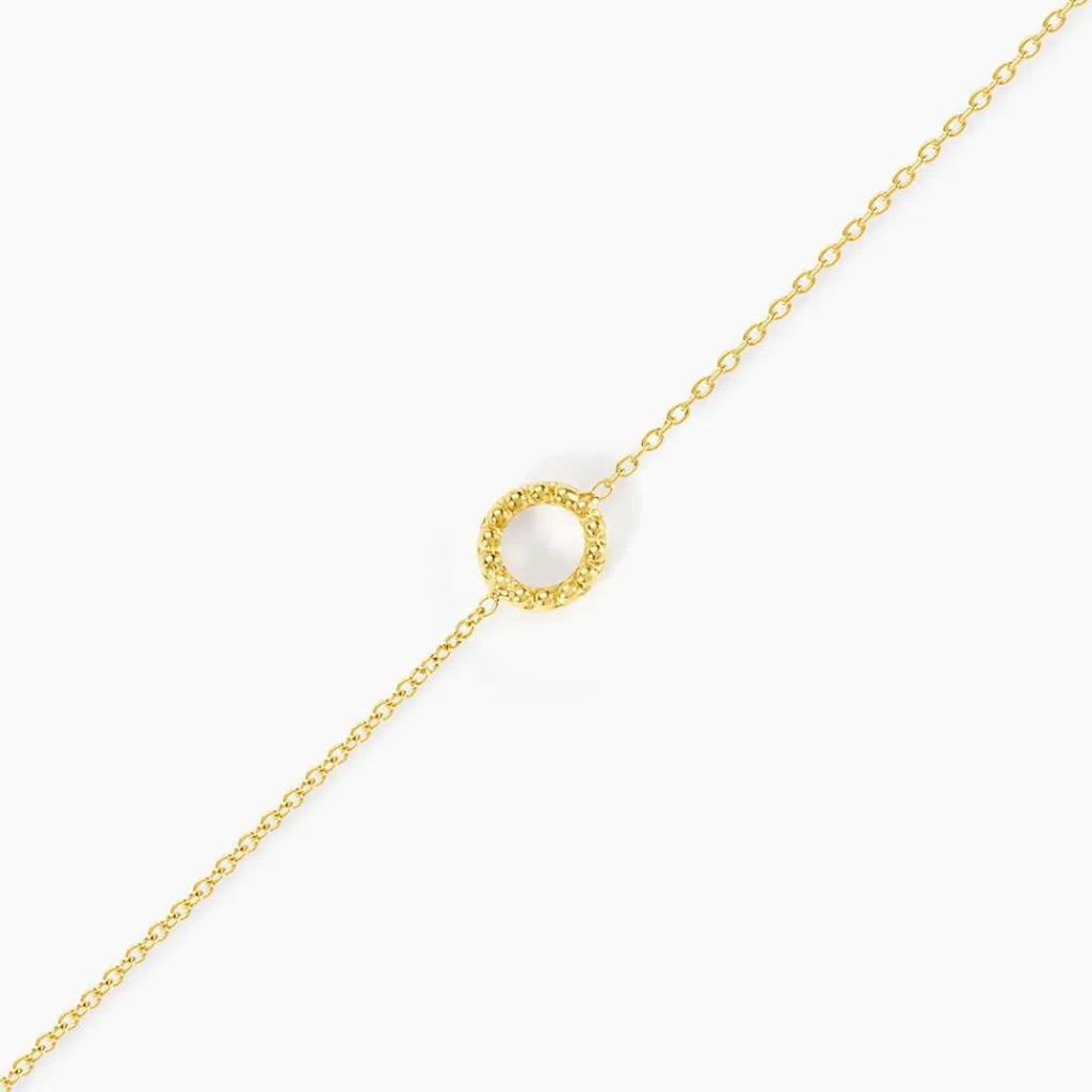 Bracelet Argent Jaune 925/1000 Cercle Ajoure Effet Perle Maille Forcat 18cm