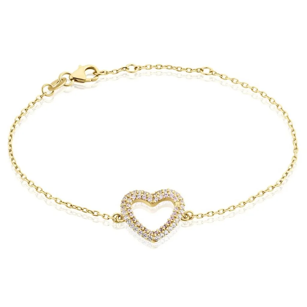Bracelet Plaqué Or Jaune C艙ur Pavage Oxydes De Zirconium Rose Et Blanc Maille Forcat 19cm