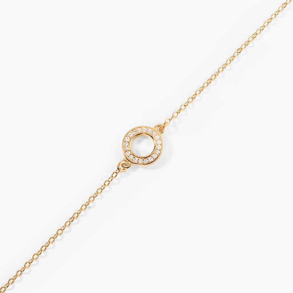 Bracelet Plaqué Or Jaune Cercle Ajoure Serti Griffes Oxydes De Zirconium Maille Forcat 18cm