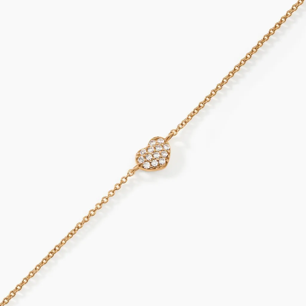 Bracelet Plaque Or Jaune C艙ur Pavage Oxydes De Zirconium Maille Forcat 19cm