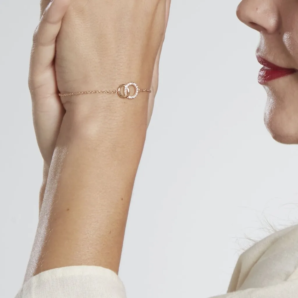 Bracelet Plaqué Or Jaune Double Cercles Entrelaces Oxydes De Zirconium 18cm