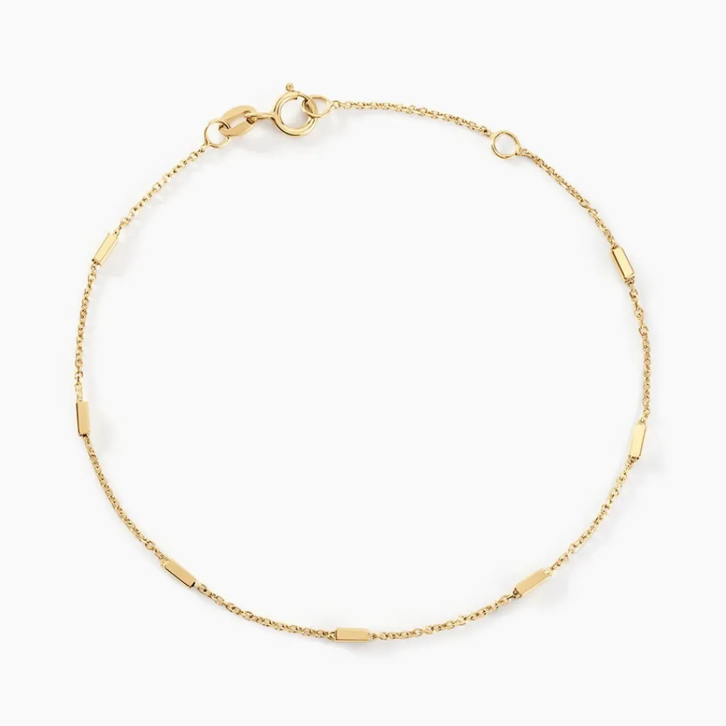 Bracelet Or Jaune 375/1000 rain Alternance De Barrettes Et Chaine Maille Jaseron 16+2cm