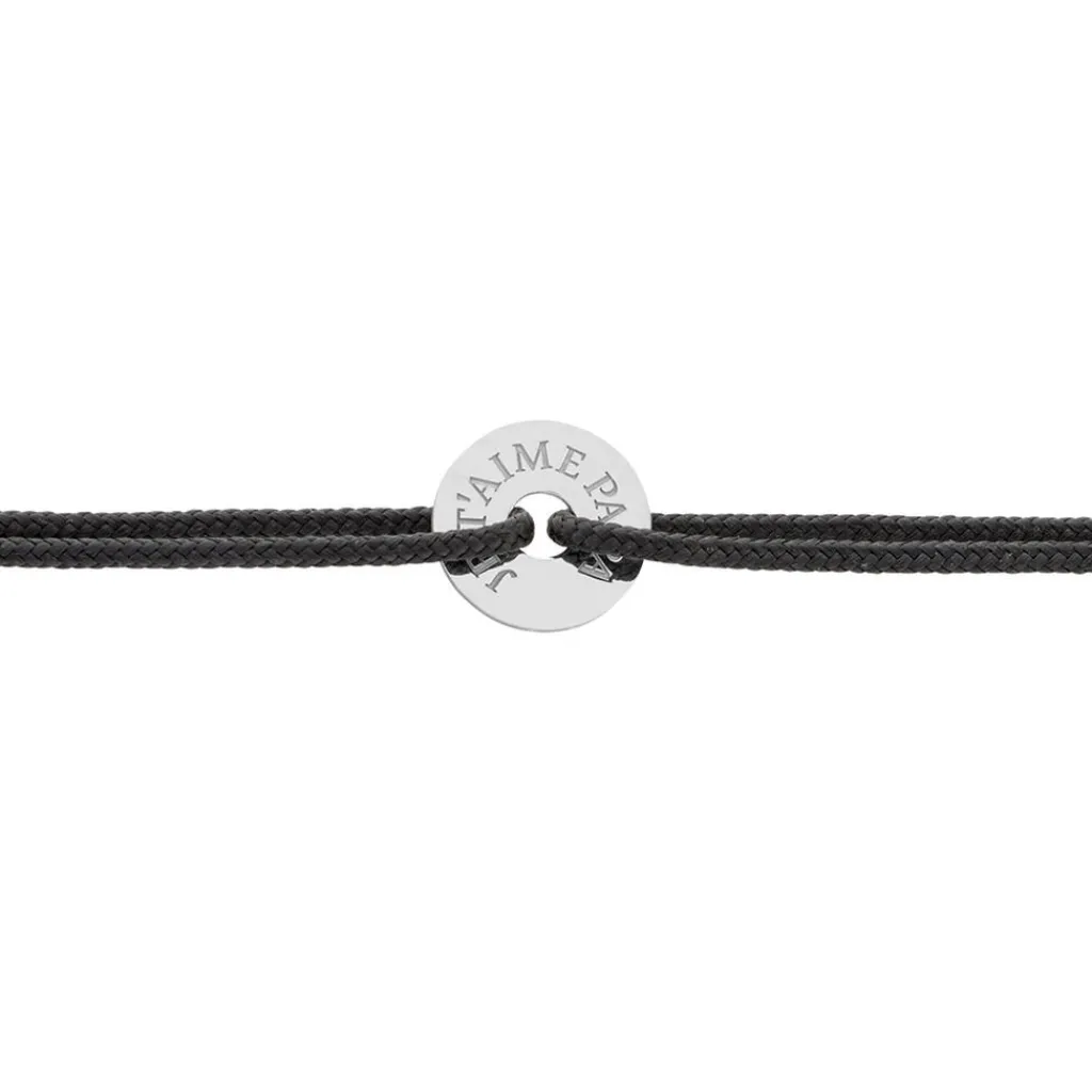 Bracelet Argent Blanc 925/1000 Cercle Gravé Je T’aime Papa Cordon Noir 19cm