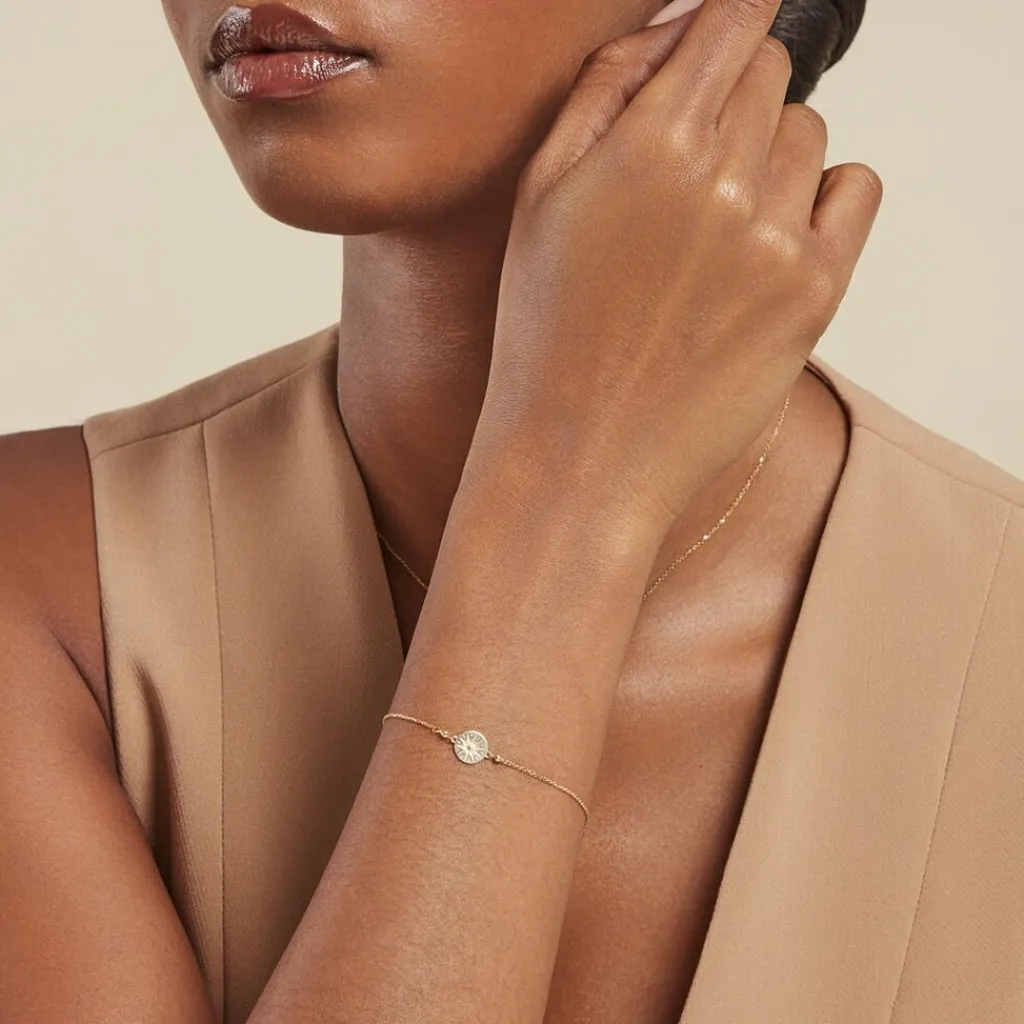 Bracelet Or Aune 375/1000 Pastille Soleil Et Lune Maille Jaseron 16+2cm