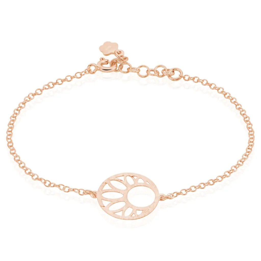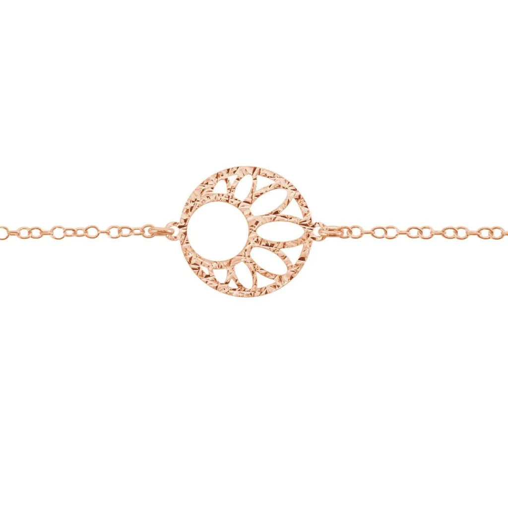 Bracelet Argent Rose 925/1000 Rosace Effet Diamante Maille Forcat 18cm