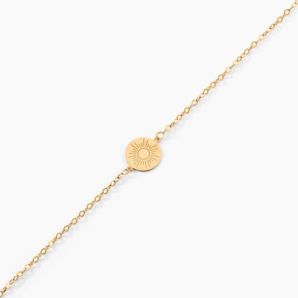 Bracelet Or Jaune 375/1000 Pastille Soleil 8mm Maille Forcat 16+2cm