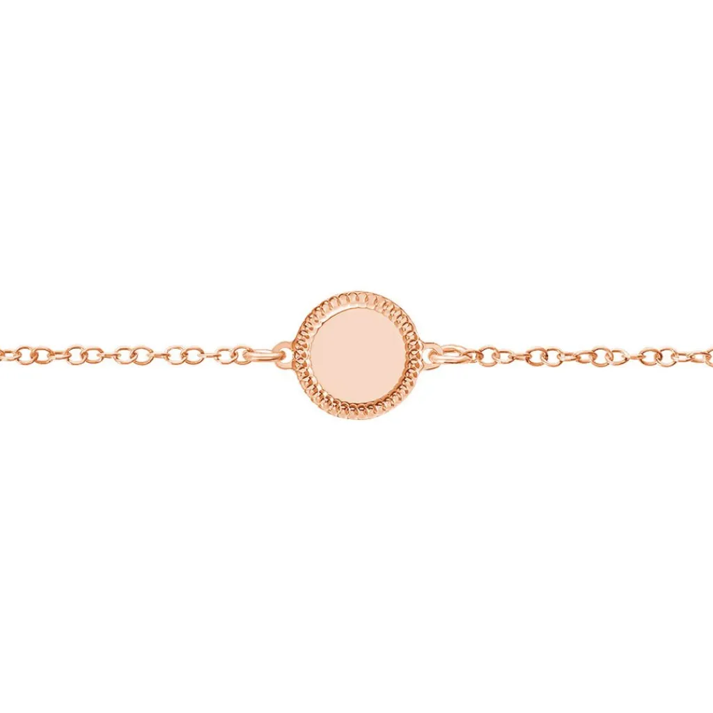 Bracelet Argent Rose 925/1000 Pastille Lisse Et Diamantee Maille Forcat 18cm