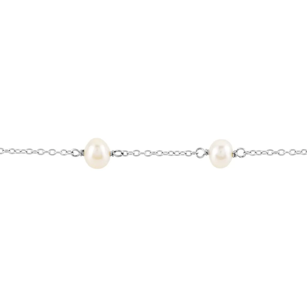 Bracelet Argent Blanc 925/1000 Perles De Culture 4-4.5 Mm Maille Forçat 18.5cm