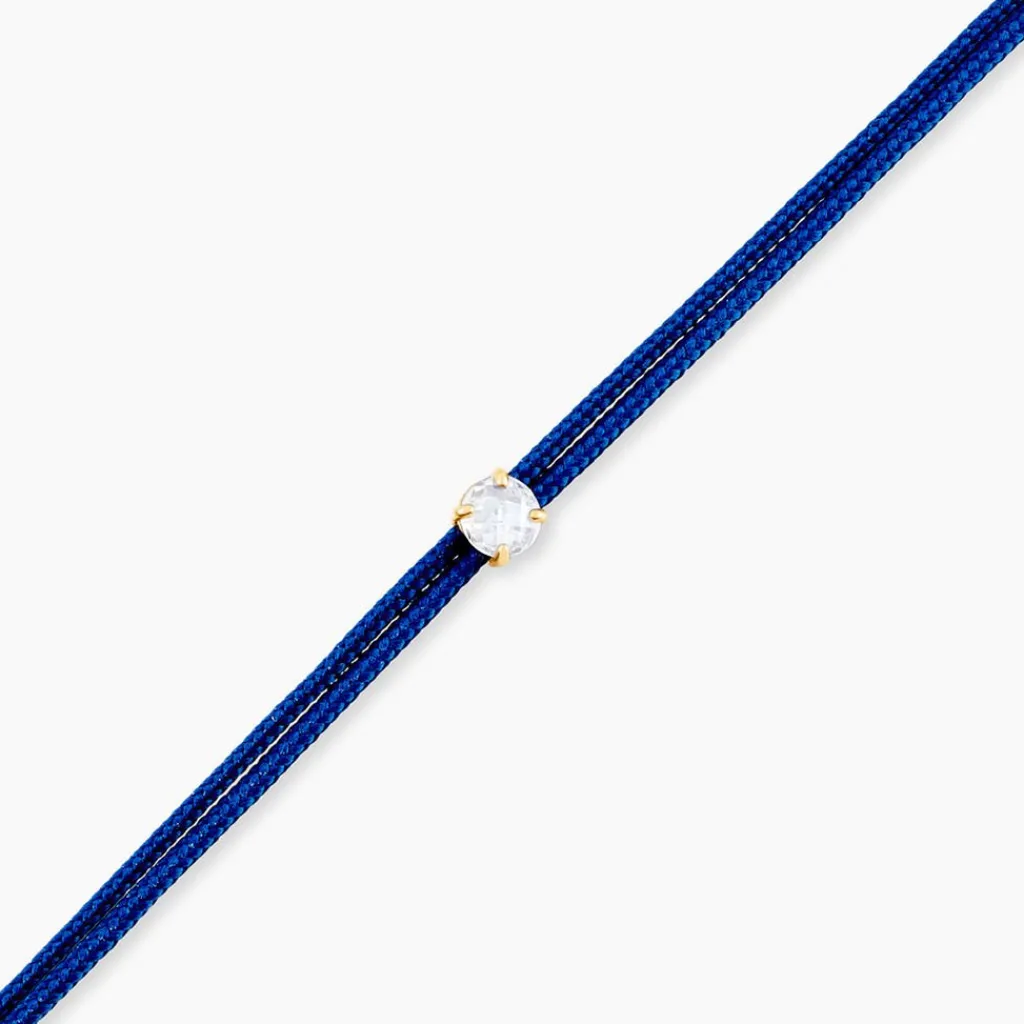 Bracelet Or Jaune 375/1000 Oxyde De Zirconium Cordon Ajustable Bleu 14cm