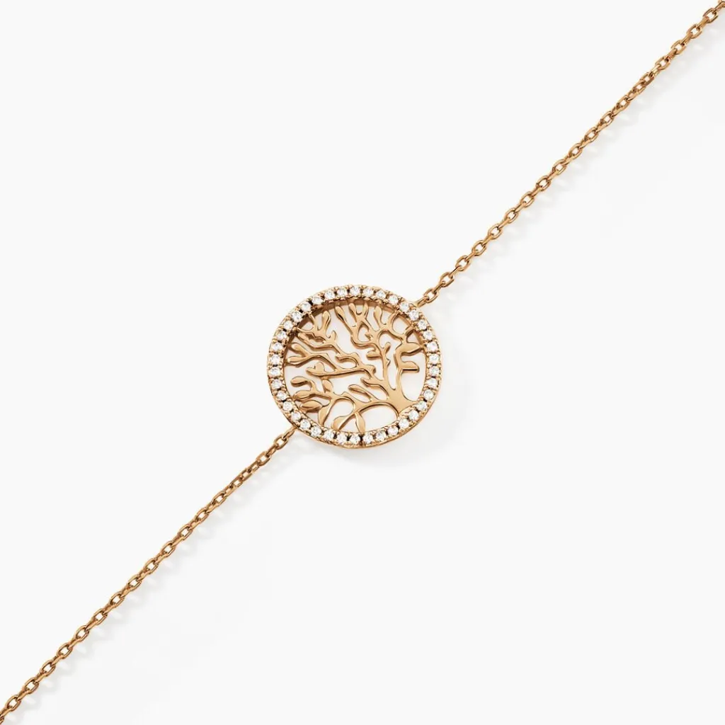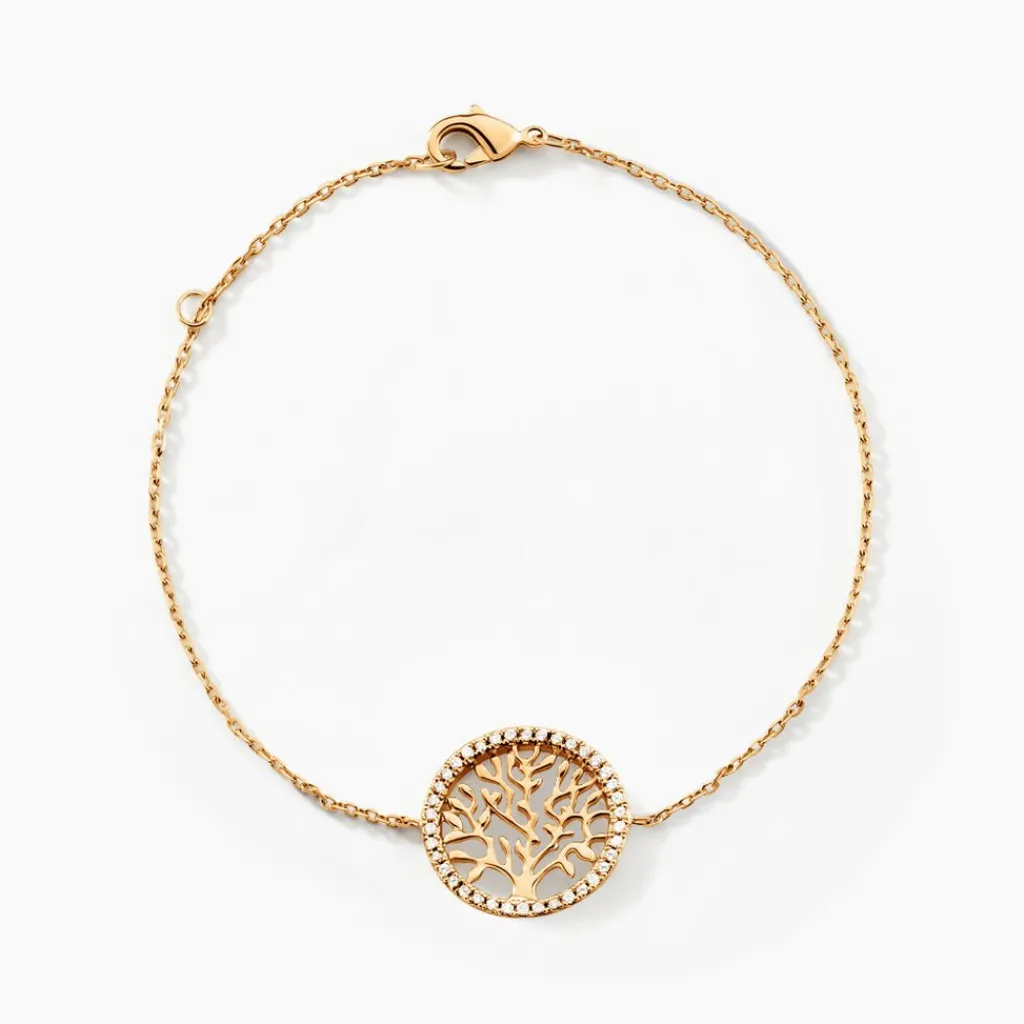 Bracelet Plaqué Or Jaune Rond Arbre De Vie Entourage Oxydes De Zirconium 18cm