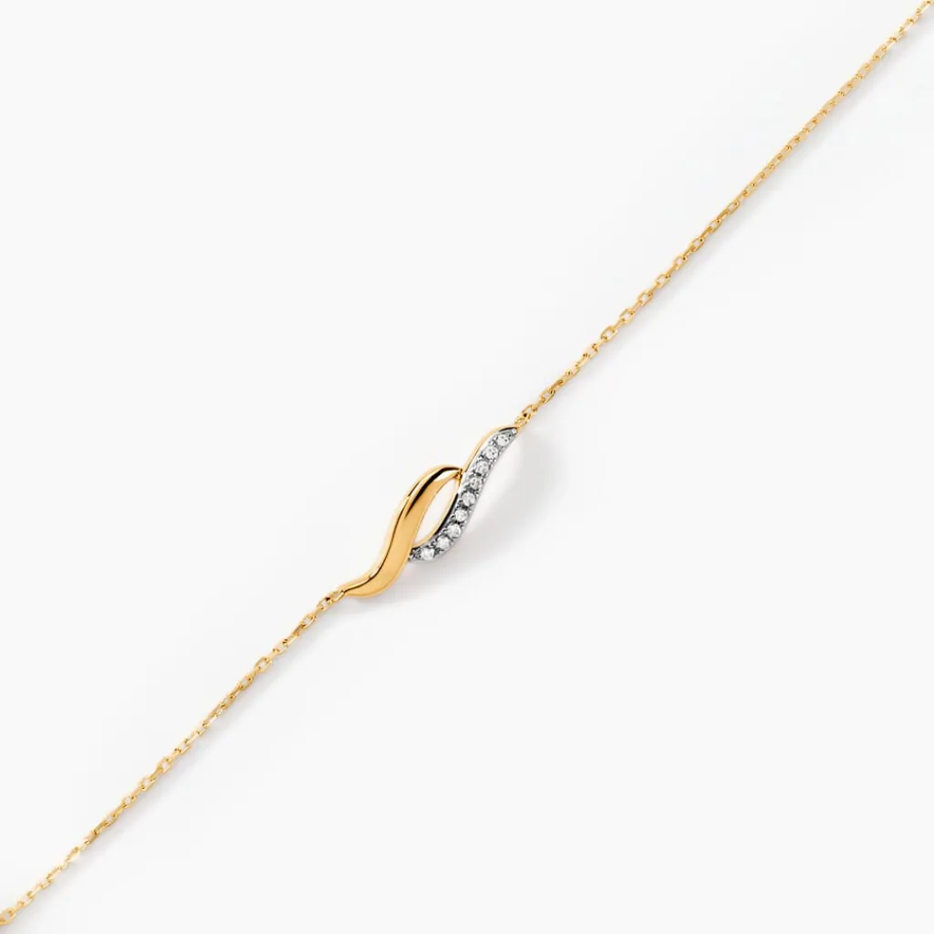 Bracelet Or Jaune 375/1000 Diamants 18.5cm
