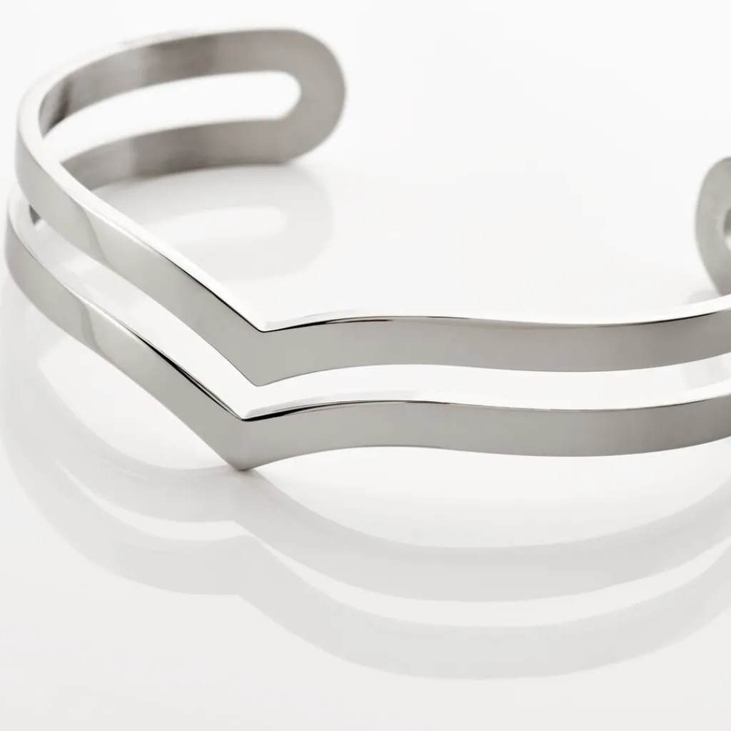 Bracelet Jonc Acier Blanc Ouvert Forme Double Aile De Mouette Ajouree