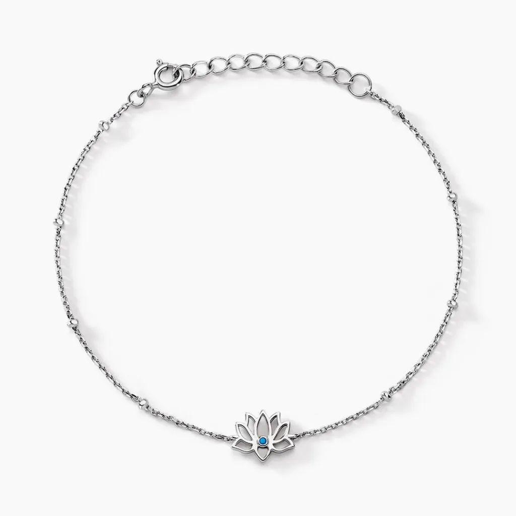 Bracelet Argent Blanc 925/1000 Fleur Oxyde De Zirconium Turquoise Maille Jaseron 17+3cm