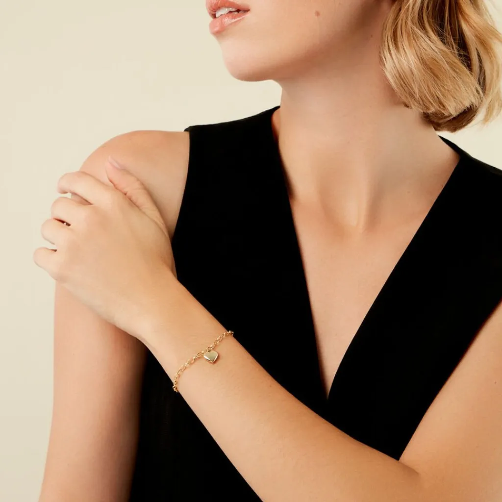 Bracelet Or Jaune 375/1000 C艙ur Maille Jaseron Largeur 2,9Mm Longueur 18,5Cm Ajustable