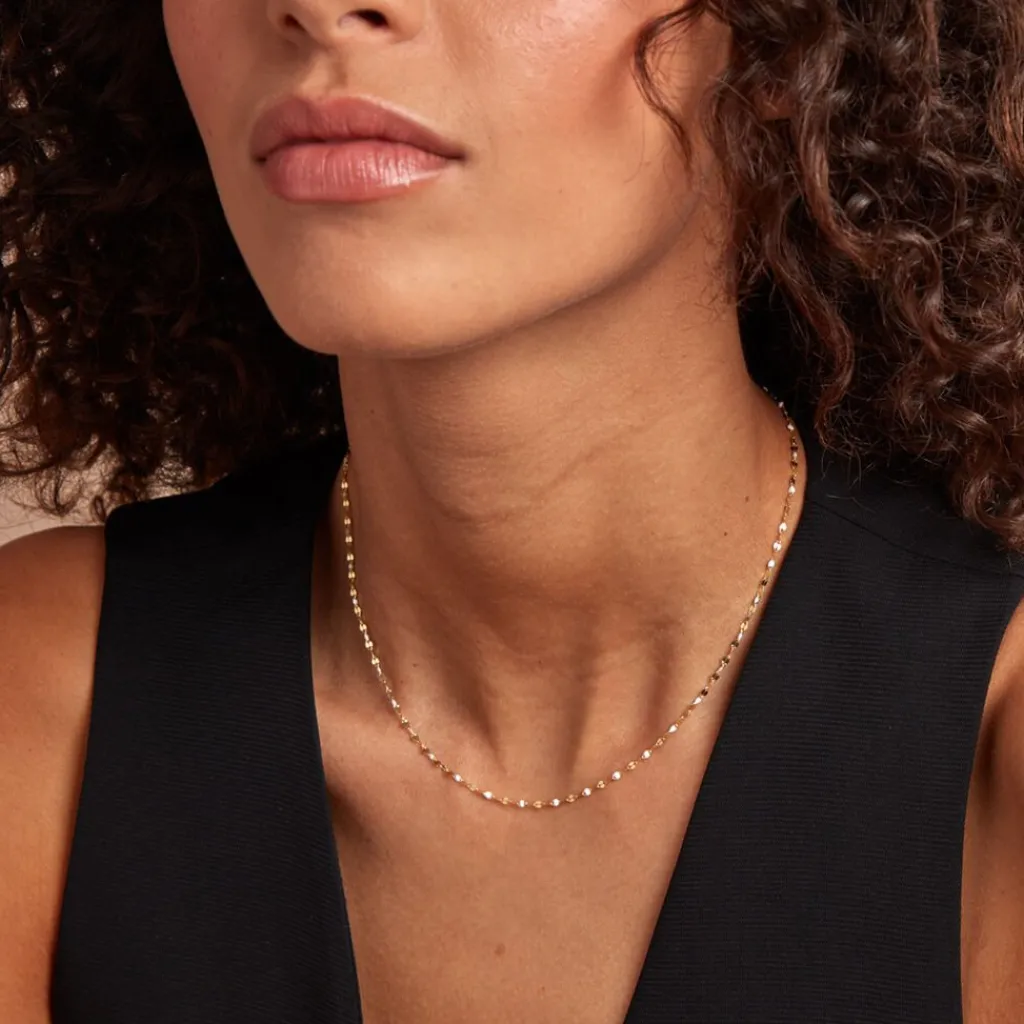 Collier Or Jaune 375/1000 Email Blanc Maille Lumina 40+2cm