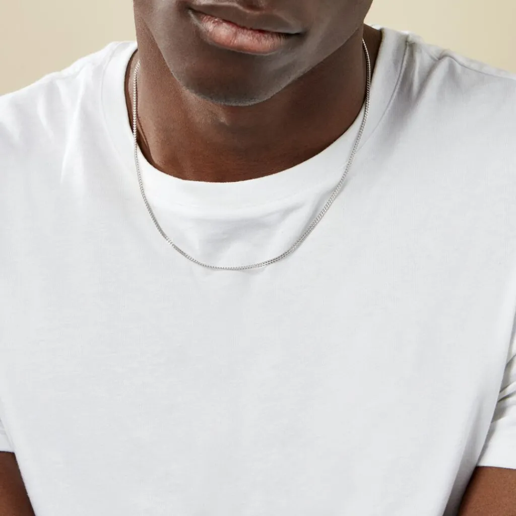 Chaîne Argent Blanc 925/1000 Maille Gourmette Largeur 2.1mm 50cm