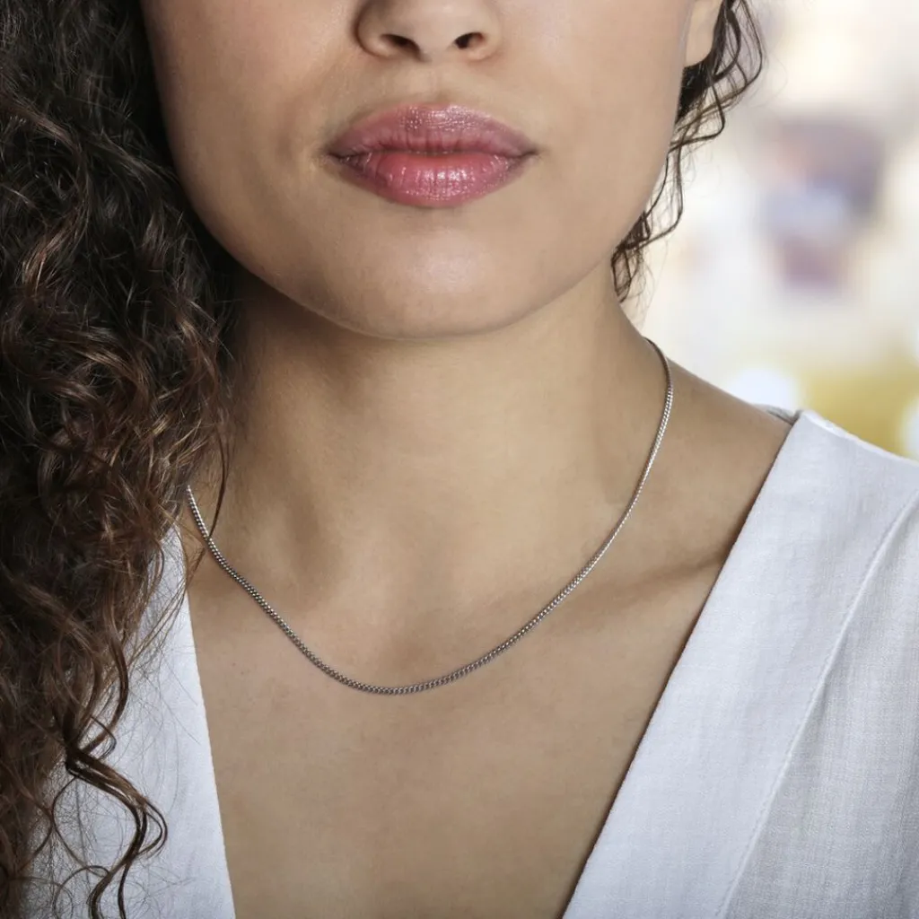 Chaîne Argent Blanc 925/1000 Maille Gourmette Largeur 1.6mm 42cm