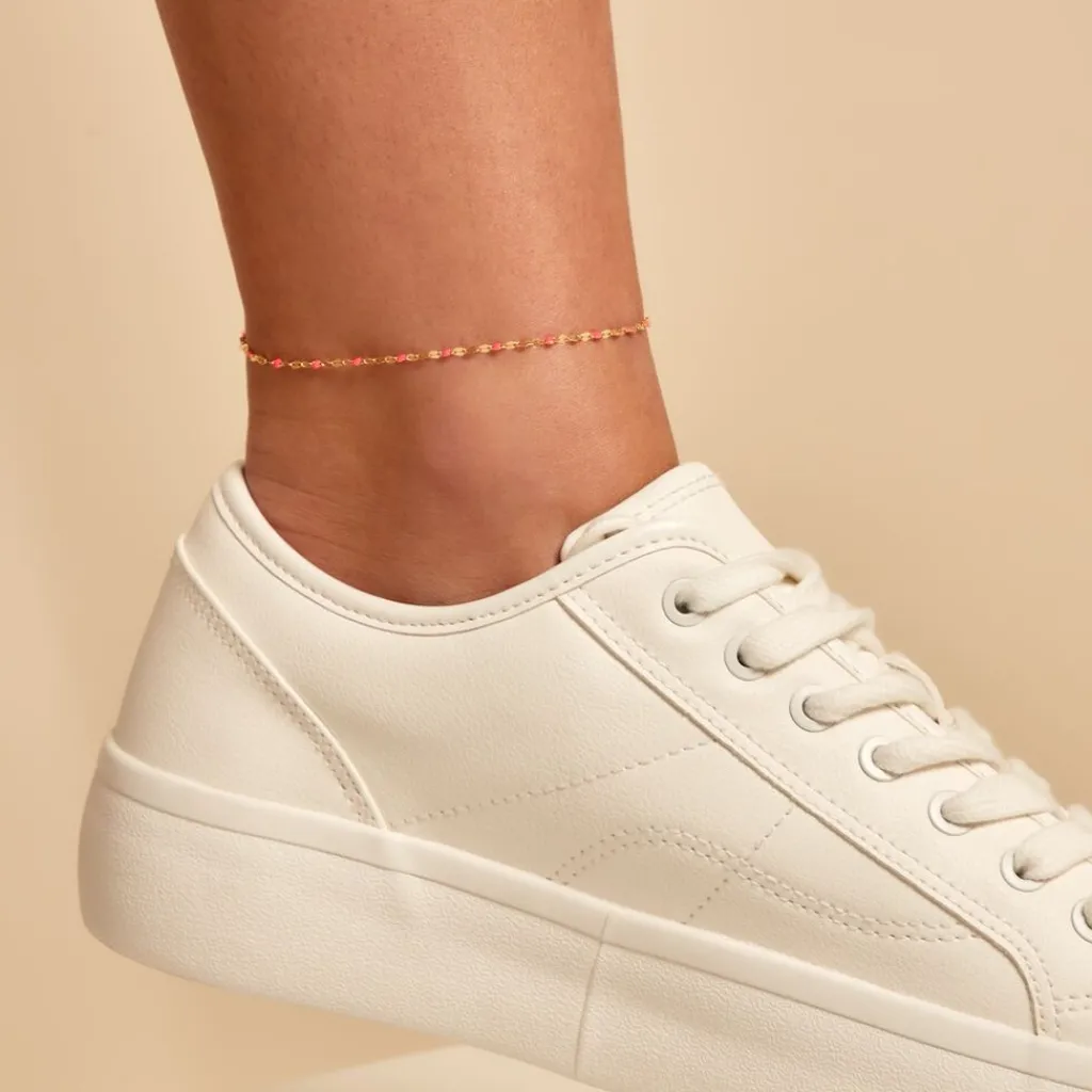 Chaine De Cheville Or Jaune 375/1000 Email Rose Maille Lumina 22+2+2cm