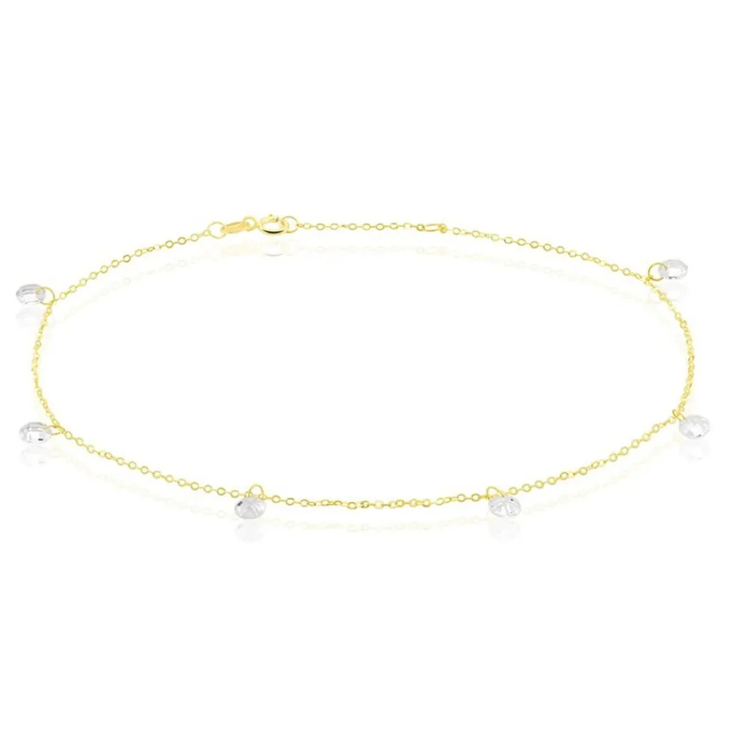 Chaine De Cheville Or Jaune 375/1000 6 Oxydes De Zirconium Perces 22+2 Cm