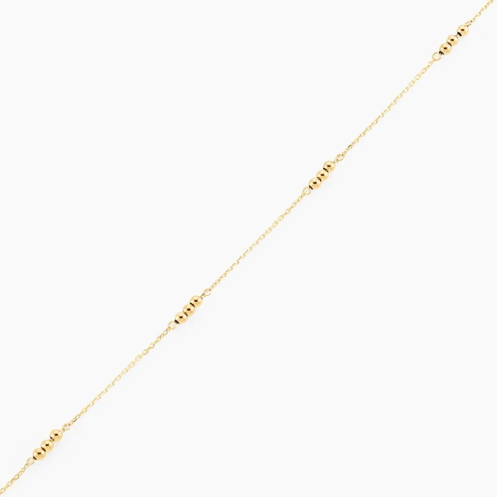 Chaine De Cheville Or Jaune 375/1000 Motifs Petites Boules Maille Forcat 22+2cm